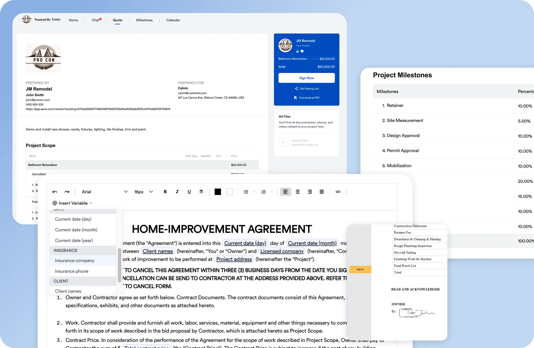 Plus, because Eano Pro ties proposals to your other project management data, you’ll never have to double-enter information or dig for files when a job starts.