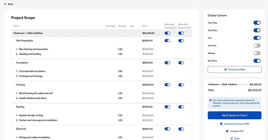 - Professionalism: Clean, detailed proposals help you look organized and trustworthy—giving you an edge in competitive bidding.