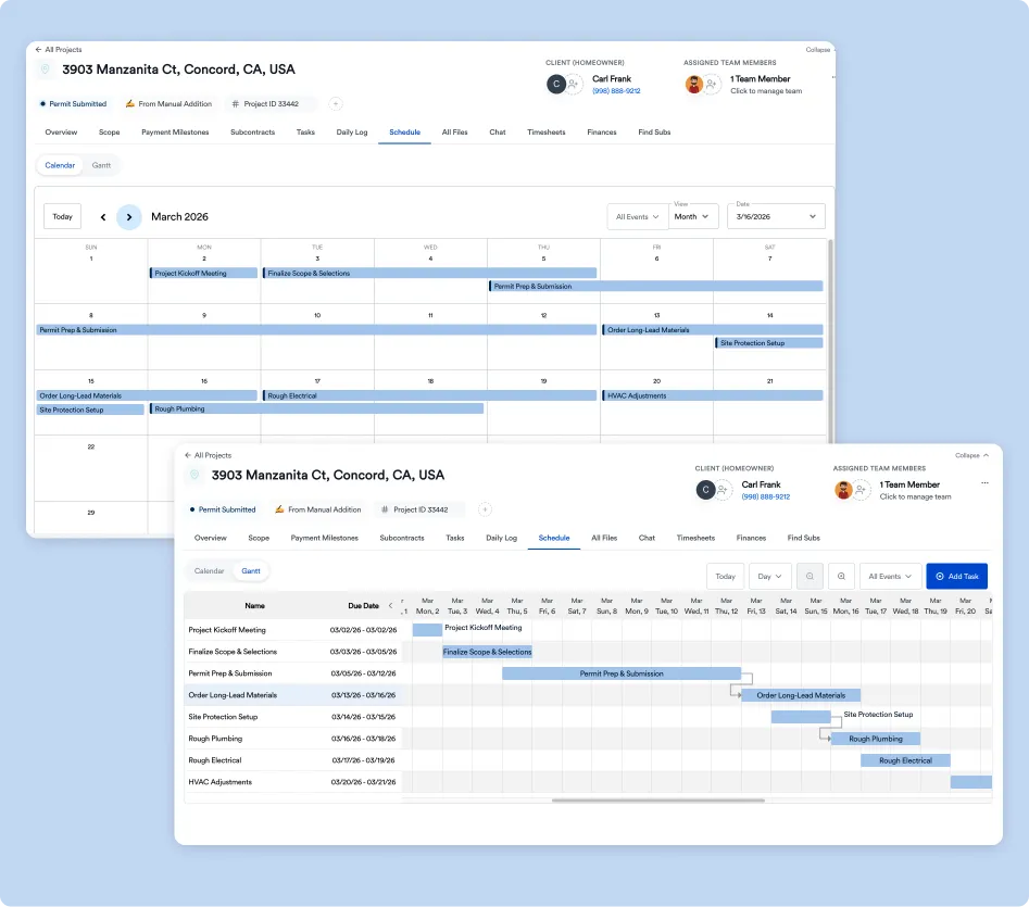 Provide homeowners with visibility into project progress, approvals, and payment schedules.